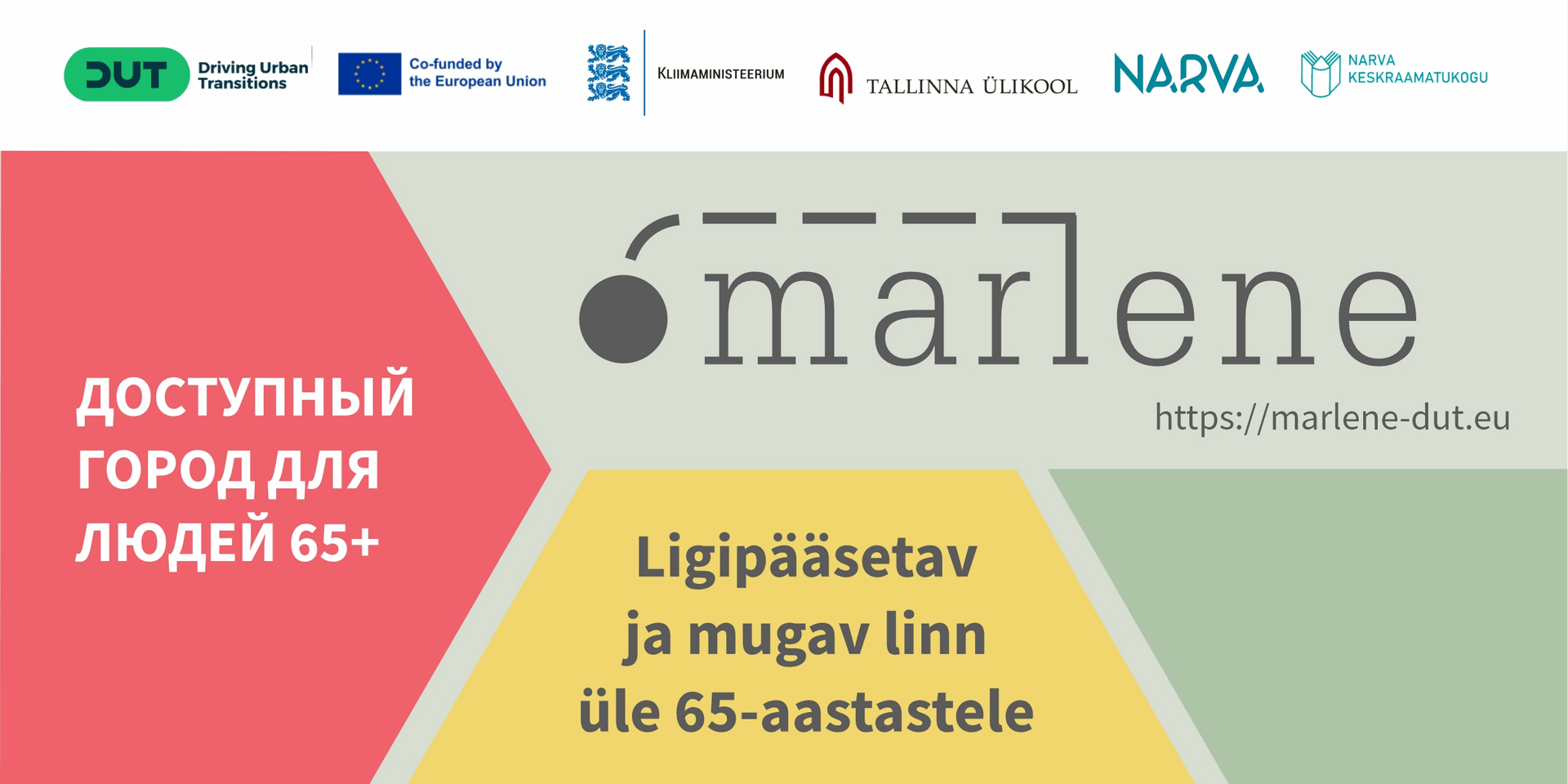 Цель проекта “МАРЛЕНЕ” — способствовать развитию доступной городской среды с учетом потребностей и интересов людей старше 65 лет. В Нарве проект проводится с октября 2024 года по октябрь 2027 года. Проект “МАРЛЕНЕ” финансируется программой DUT Европейского Союза и Министерством климата Эстонии. Исследование в Нарве проводит Центр ландшафта и культуры Таллиннского университета, при поддержке Нарвской городской управы.